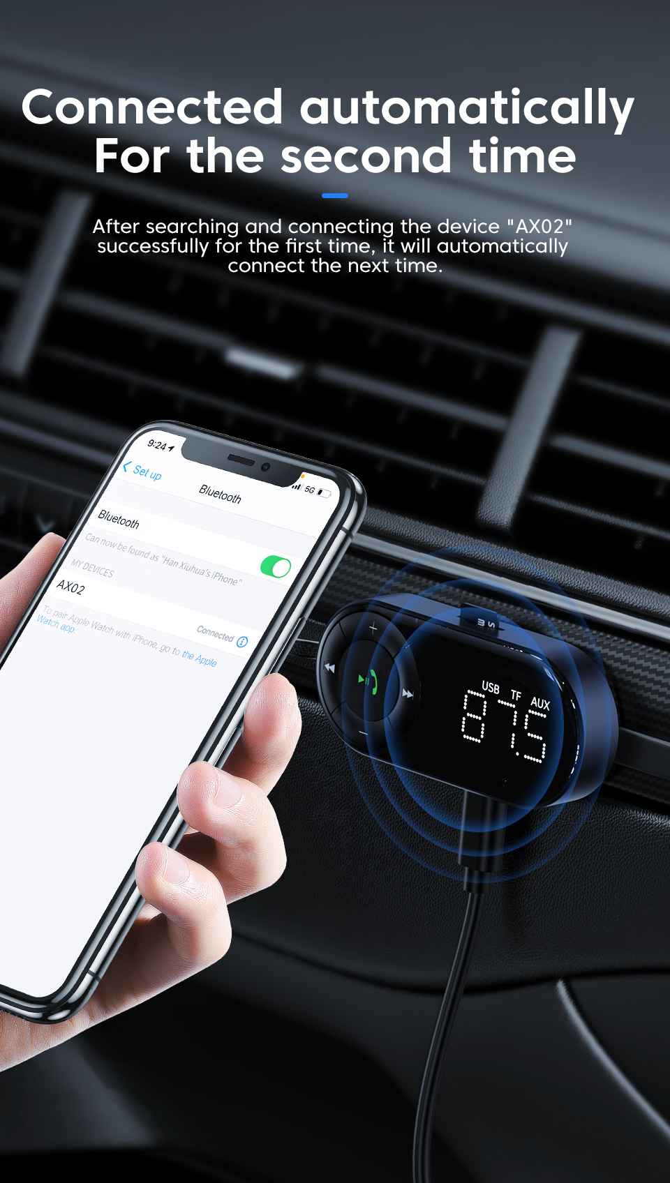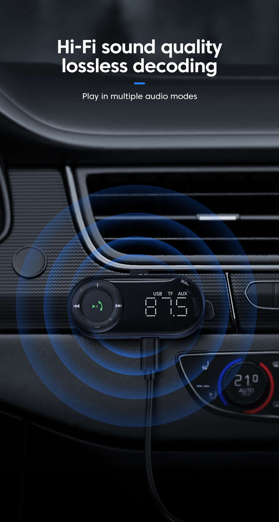 — Transmisión inalámbrica de audio al receptor FM de su coche